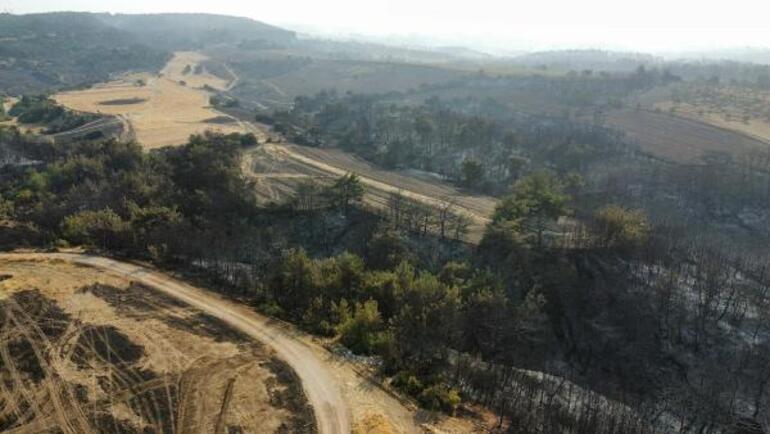 Yangına müdahalenin devam ettiği kentte, söndürme çalışmalarının tamamlandığı bazı noktalardaki ağaçlar küle döndü. Soğutma çalışmalarının devam ettiği bölgelerde yangının ardından yüzlerce ağacın yanmasıyla bölgenin yeşil rengi griye döndüğü görüldü. Bu bölgelerde ise helikopter ve uçaklarla soğutma çalışmaları sürüyor.