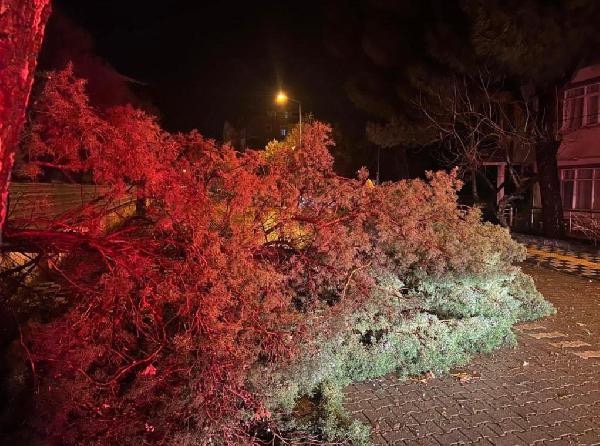 Devrilen ağaç nedeniyle yol, trafiğe kapandı. İtfaiye ekiplerinin çalışması sonucu devrilen ağaç kesilerek kaldırılırken, yol tekrar trafiğe açıldı.