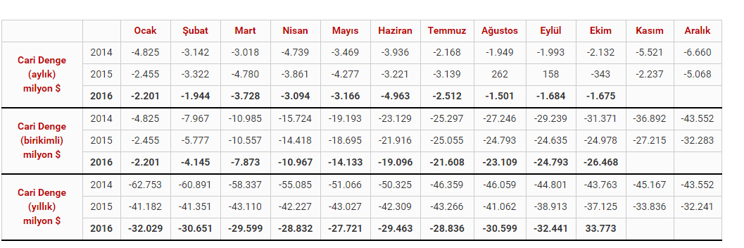 Ekim ayında cari işlemler açığı 1 milyar 675 milyon dolar olurken, bunun sonucunda 12 aylık cari işlemler açığı 33 milyar 773 milyon dolar düzeyinde gerçekleşmişti.