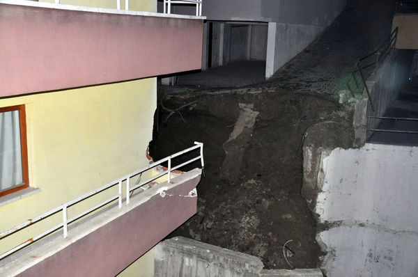 İki binadaki vatandaşların ve otoparktaki araçların olay yerinden uzaklaştırılmasının ardından, toprak kayması meydana geldi. Toprak kayması sonucu zemini boşalan binanın istinat duvarı yaklaşık 10 metre yükseklikten bitişikteki aparmanın üzerine devrildi. Yan binadaki bir dairenin balkonu ve dış duvarı, üzerine yıkılan istinat duvarı nedeniyle çöktü.