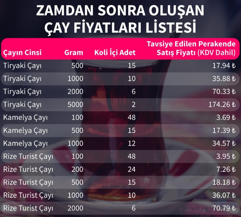 1 kilogram turist çayının tavsiye edilen perakende satış fiyatı 36.07 TL oldu.