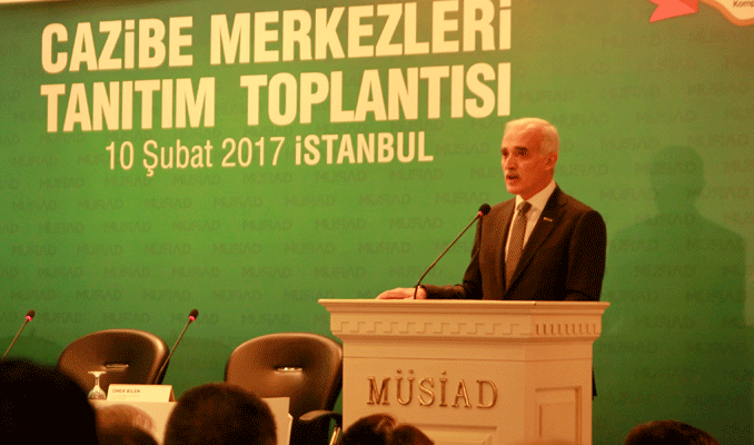 Cazibe Merkezleri Programı’nın kamu ve özel sektörün el ele yürüdüğü bir proje olduğunu ve diğer projelerin ötesine geçtiklerini söyleyen Kalkınma Bakanı Lütfi Elvan, bu proje ile başından sonuna kadar yatırımcı ile bir arada olacaklarını belirterek, “Ajandamızda, zihnimizde geri kalmışlık yok. Bu bölge artık bu tabire layık bir bölge değil. Cazibe Merkezi Programı ile proje fikrinden, fizibilite çalışmasına, personel alımından, üretim aşamasına kamu olarak sizin yanınızda olacağız. Herhangi bir sorunla karşılaştığınızda bu sorunu çözecek olan biziz. Herhangi bir danışmanlık müessesesine ihtiyacınız yok, onu da biz veriyoruz. Bina yapımında yatırımcılara alternatifler sunarak, 10 milyon liraya kadar bina yapım desteği vereceğiz. Cazibe merkezleri için Kalkınma Bankası'nın sermayesini 160 milyon liradan 500 milyon liraya çıkardık ilk aşama olarak. İkincisi aşamada da bütçemizden şu anda 1,1 milyar liralık bir ödenek ayırdık. Ancak ihtiyaç duyulması halinde ilave ödenek sağlamamız mümkün olacak” dedi. Elvan, farklı illerde yatırımı olan firmalara öncelik vereceklerini, yüzde 30 öz kaynak şartı getirdiklerini, yatırımcının da elini taşın altına koymasını istediklerini vurguladı.