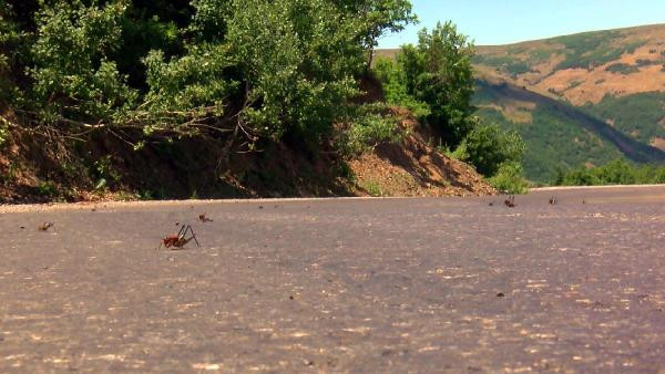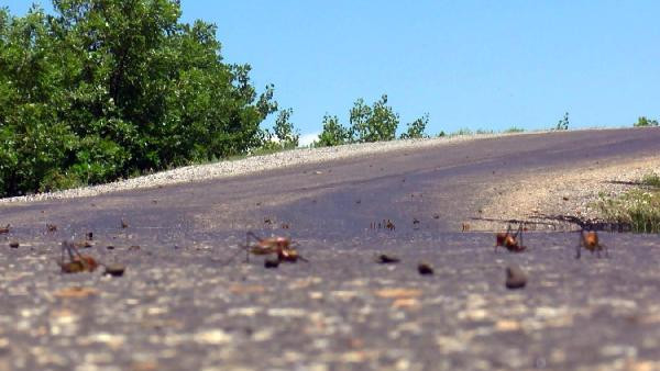 Üçevler Grup köy yolu ile toprak yüzeylerini adeta kaplayarak şehrin ovasına doğru ilerleyen çalı çekirgeleriyle karşılaşan vatandaşlar, büyük bir korku yaşıyor.