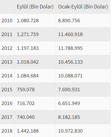 Çelik sektörünün yıllar itibarıyla eylül ve ocak-eylül dönemlerine ilişkin gerçekleştirdiği ihracat rakamları şöyle: