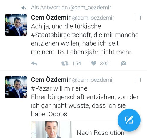 Özdemir bir başka tweetinde ise, Türk vatandaşlığının alınması yönündeki beyanlara, Ha bu arada, bazılarının almak istediği Türk vatandaşlığım, 18 yaşımdan itibaren yok karşılığını verdi.
