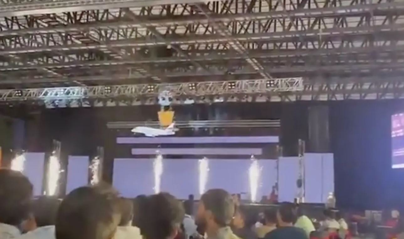 Sahnenin üstüne kurulan platforma çıkarak konuşma yapan Shah ve Vistex'in üst düzey isimlerindne Vishwanath Raju Datla'yı taşıyan kafes benzeri yapıyı tutan halatlardan birinin kopmasıyla korkunç olay meydana geldi.