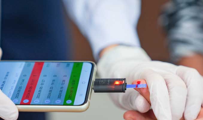 TÜBİTAK'ın da destek verdiği çalışmayla parmaktan alınan kandan şeker ölçümü yapabilen "glukometre probu" geliştiren bilim insanları, bu cihazın cep telefonu şarj girişine takılması yoluyla ölçüm verilerini uygulama üzerinden hastane ya da doktora anlık gönderme seçeneği sunuyor.