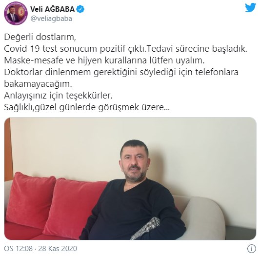 CHP Genel Başkan Yardımcısı Veli Ağbaba, sosyal medya hesabından yaptığı açıklamada korona virüs testinin pozitif çıktığını duyurdu.