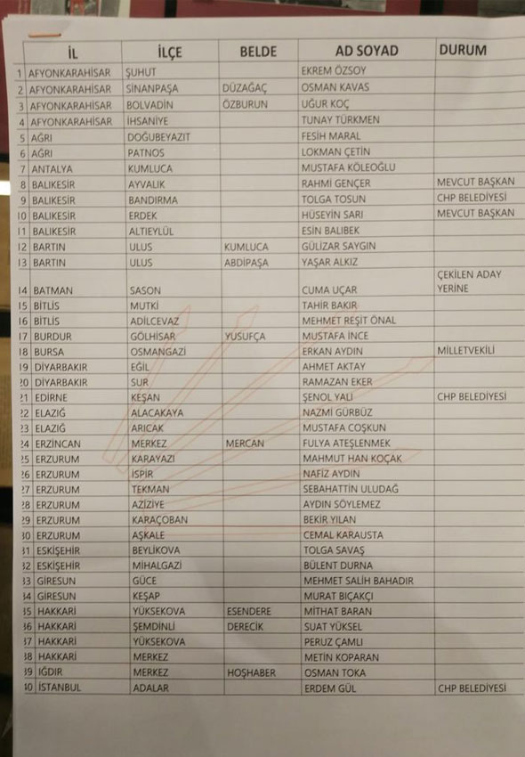 Toplamda 145 belediye başkanımızın ismini açıkladık.