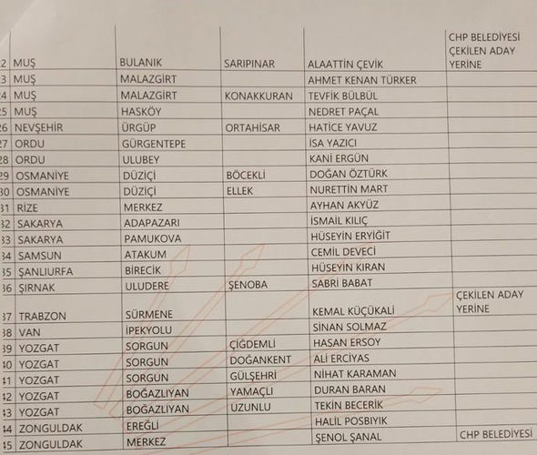 CHP'NİN BELİRLEDİĞİ ADAYLAR