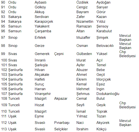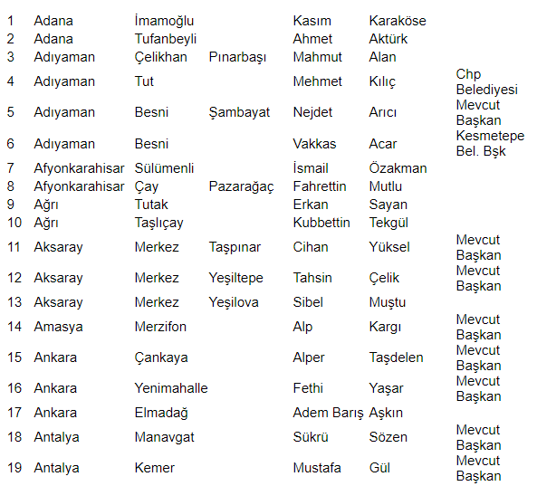CHP'nin bugün belirlediği belediye başkan adaylarının tam listesi şöyle: