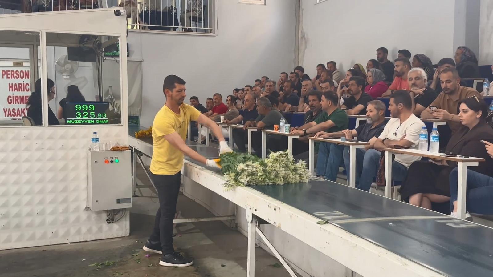 Çiçekler yürüyen bantta sergilenirken, satışa sunmak istediği ürünü almak isteyen çiçekçiler ise birbirleriyle yarışıyor. En yüksek fiyat teklifini veren esnaf, banttan geçen çiçeklerin sahibi oluyor. Mezatta, 150 bin dal çiçek satışa sunulurken satışlarda yüzde 90 artış yaşandı.