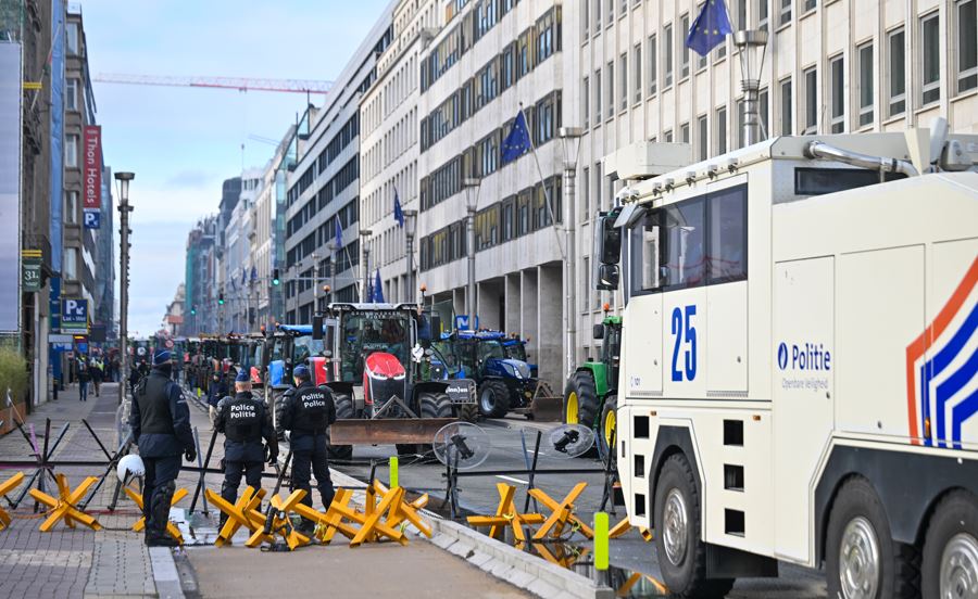 Çiftçiler, AP çevresiyle birlikte AB Komisyonu ve AB Konseyi binaları önünden de geçen Rue de la Loi​​​​​​​ Caddesi'ne ve bölgedeki ara sokaklara yüzlerce traktörü park ederek trafiği durdurdu. Lüksemburg Meydanı'ndaki çiftçiler, AP binasına doğru patates ve yumurta fırlatırken, sert polis müdahalesi ile karşılaştı.