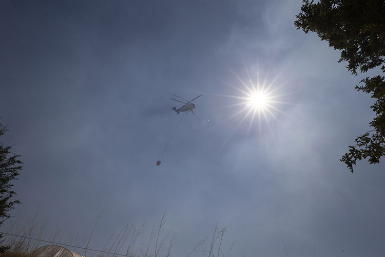 Yangına kara ekiplerinin yanı sıra havadan da 8 uçak ve 14 helikopterle müdahale ediliyor.