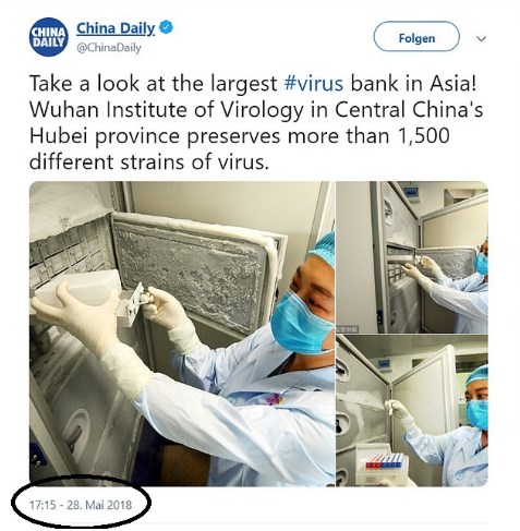Dünyayı etkisi altına alan korona virüs salgınının merkez üssü haline gelen ABD'de Covid-19'un kaynağının Vuhan'daki bir laboratuvar olduğuna dair inanç güçlenirken, Salgının başladığı Çin'in Vuhan kentindeki Viroloji Enstitüsü’ye ait bir buzdolabında koronavirüsün de bulunduğu 1500 farklı virüsün muhafaza edildiği fotoğraf karesi 2018 yılında Çin Haber ajansı tarafından Twitter üzerinden paylaşıldığı ve daha sonra silindiği ortaya çıktı.
