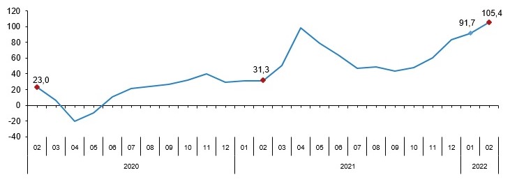 Toplam ciro yıllık değişim oranı (%), Şubat 2022