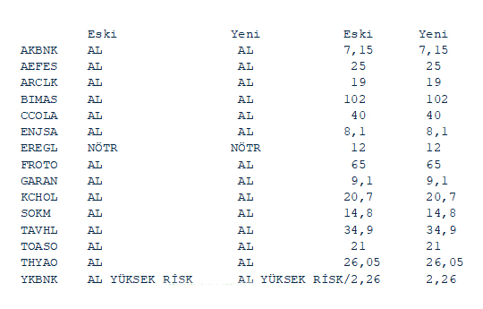 Havacılık şirketlerinin artan uluslararası talep ile biraz rahatlama bulmalarını bekleyen Citi ekomistleri, toplantıda temsil edilen bankaların kredilerde bastırılmış bir büyüme beklediklerini ortaya kolduklarını da aktardı. Citi'nin takip ettiği hisseler için hedef fiyat ve tavsiyeleri şöyle: