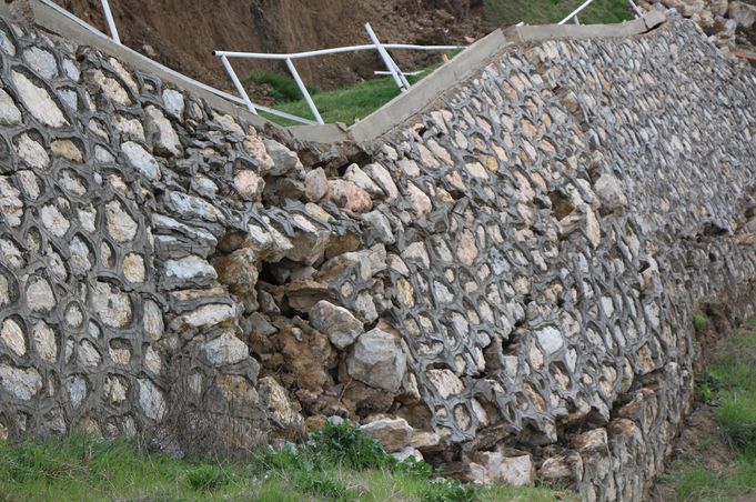 Karabük'te aralıklarla etkili olan yağmur nedeniyle bir çocuk parkında, heyelan meydana geldi. 4 metrelik çökmenin olduğu alanda istinat duvarının da yıkıldığı görüldü.