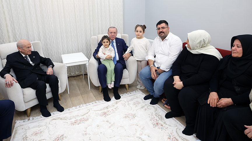 Erdoğan, Hatay programı kapsamında 600 Konutlar Sitesi'nde, depremzede Karakuş ailesinin yeni evine konuk oldu.