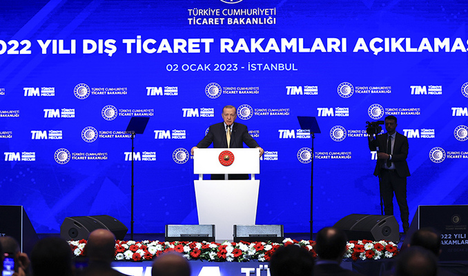 Cumhurbaşkanı Recep Tayyip Erdoğan, İstanbul'da '2022 Yılı Dış Ticaret Rakamları Açıklaması' programında dış ticaret rakamlarını paylaştı. Erdoğan küresel olumsuzluklara rağmen ihracatımızın hız kesmediğini vurguladı.