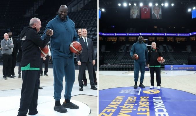 Cumhurbaşkanı Recep Tayyip Erdoğan, NBA’in efsane isimlerinden Shaquille O’Neal ile Basketbol Gelişim Merkezi’nde bir araya geldi. İkili, parkeye çıkarak kısa süreli basketbol oynadı ve birbirlerine imzalı basketbol topu hediye etti.
