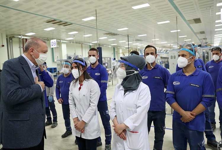 Cumhurbaşkanı Erdoğan, çalışmalarını sürdürdüğü Çengelköy'deki Vahdettin Köşkü'nden ayrılarak, Tuzla'da faaliyet gösteren bir fabrikaya geldi.