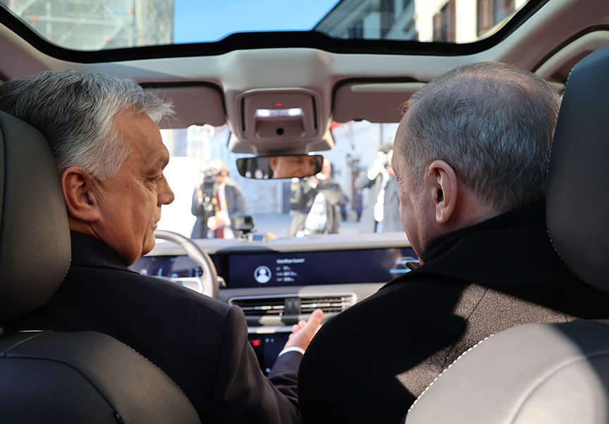 Erdoğan, iki ülke arasındaki ilişkilerin 100. yılına özel hazırlanan "HU TR-100 plakalı" Togg'u kullanan Başbakan Orban'a otomobil hakkında bilgi verdi.