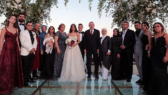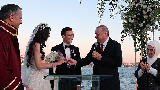 Türkiye Cumhurbaşkanı Recep Tayyip Erdoğan ve eşi Emine Erdoğan, Arsenal'in Türk asıllı Alman futbolcusu Mesut Özil ile Amine Gülşe çiftinin nikah şahidi oldu.