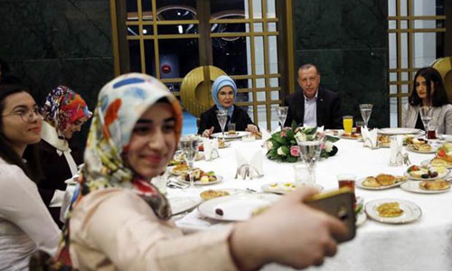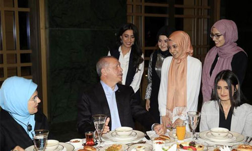 Emine Erdoğan, sosyal medya hesabı Twitter üzerinden, "Geçen hafta Tayyip Bey öğrenci yurdunda gençlerin sahur sofrasına misafir olmuştu. Biz de bu gece Külliye'de gençlerimizle sahur yapacağız. Bu tweete cevap verenlerden iletişime geçeceğimiz Ankaralı gençlerimiz de davetlimiz olacak. Kız öğrencilerimize pozitif ayrımcılık var" mesajını paylaştı.