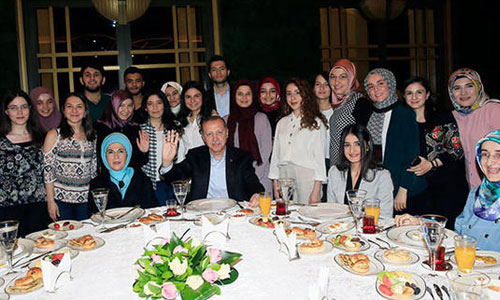 Erdoğan daha sonra gençlere sürpriz yaparak sahur programının düzenlendiği salona geçti. Cumhurbaşkanı Erdoğan'ın salona girdiğini gören gençler ise onu alkışlarla karşıladı.