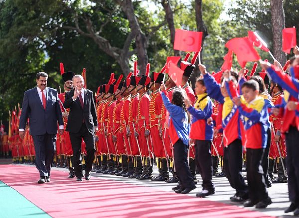 Cumhurbaşkanı Erdoğan için düzenlenen resmi törende Venezuelalı askerler İstiklal Marşı'nı yüksek sesle okudu. Askerlerin İstiklal Marşı'nı hep bir ağızdan coşkuyla okuması takdir topladı.