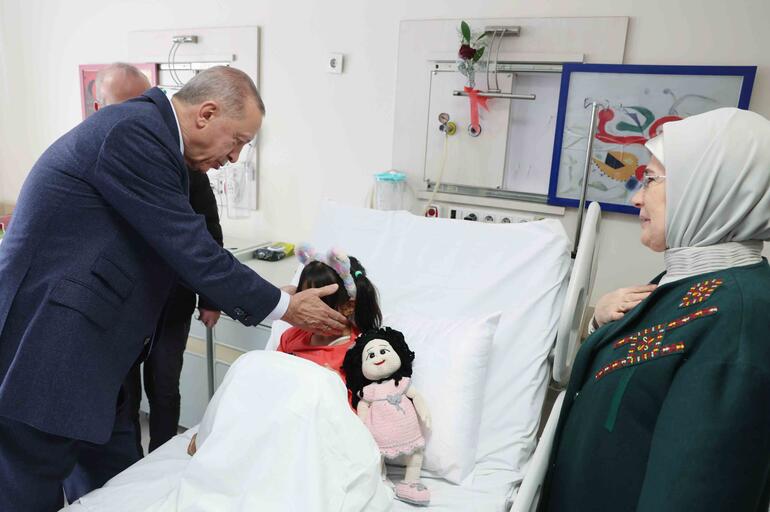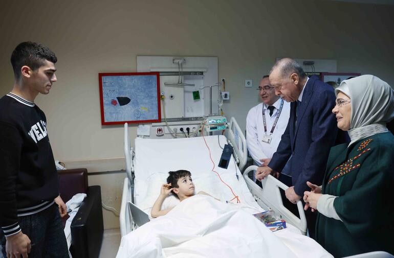 Cumhurbaşkanı Recep Tayyip Erdoğan ve eşi Emine Erdoğan, Kahramanmaraş merkezli depremlerden etkilenen ve tedavi görmek için Ankara Üniversitesi Cebeci Araştırma ve Uygulama Hastanesine sevk edilen depremzede çocukları hastanede ziyaret etti.