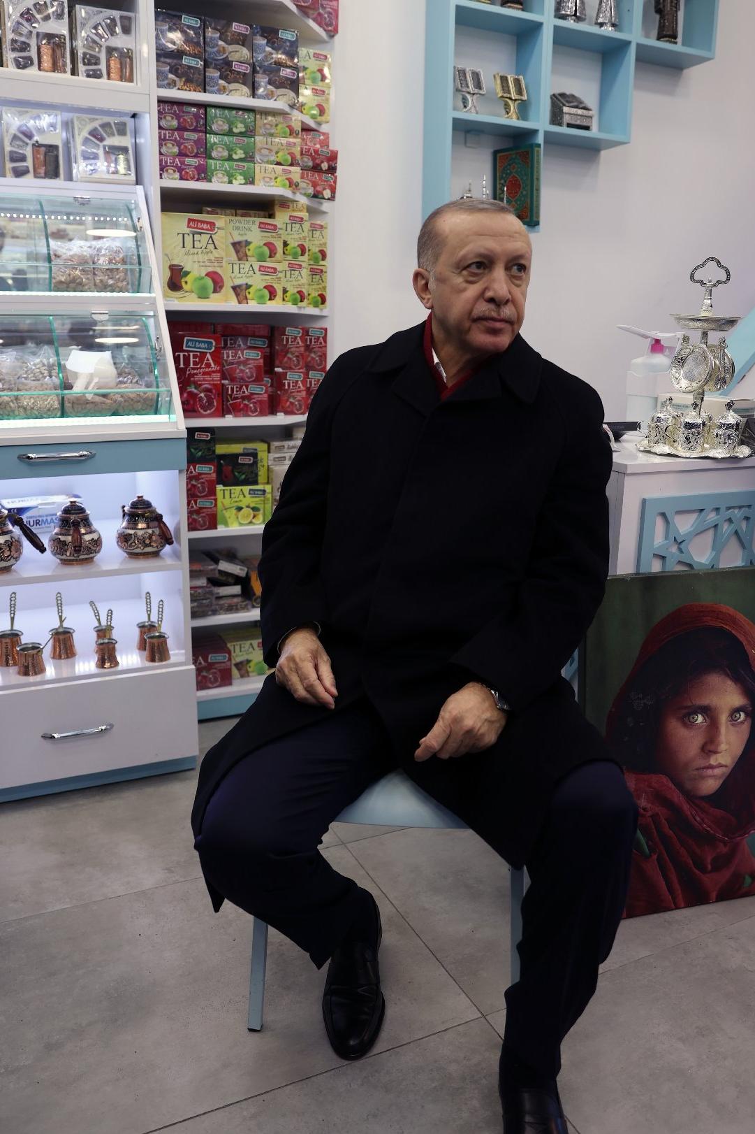Erdoğan, uğradığı bir dükkanda ikramda bulunmak isteyen işyeri sahibine “Bana bir meyve suyu verin” diye yanıt verdi.