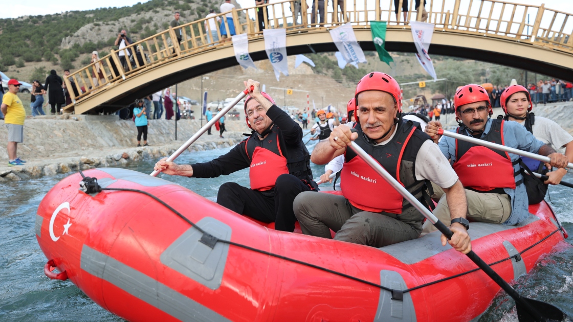Konuşmaların ardından Oktay ve Kirişci, parkurda rafting yaptı.