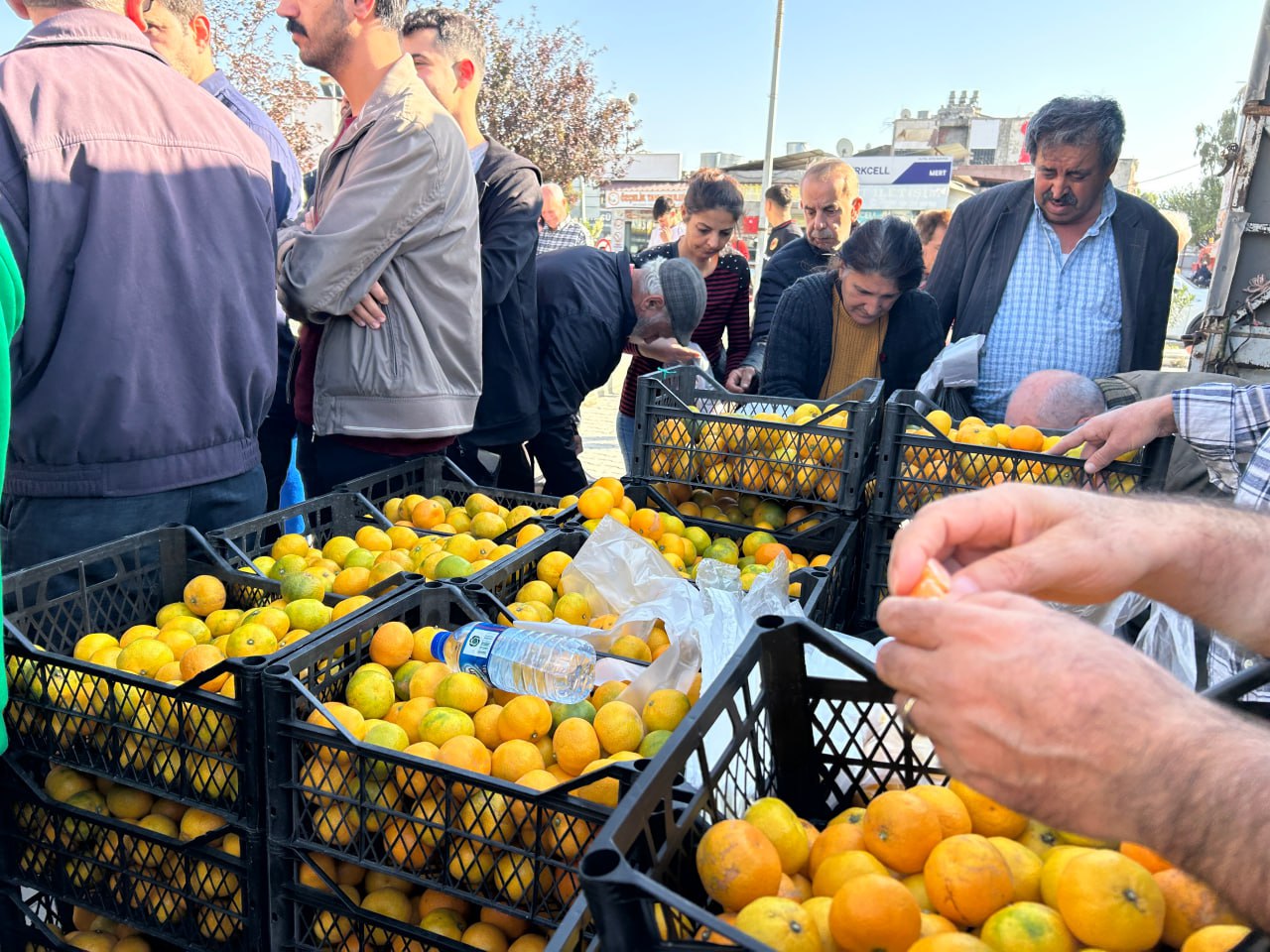 Samandağ'da üreticiler, dalında kalan mandalinaları toplayıp kasalarla ilçe merkezine getirdi. Üreticiler, tarlada kilosu 2 liraya kadar düşen mandalinayı kasalarla vatandaşlara ücretsiz dağıttı. Tonlarca mandalina kısa sürede tükenirken, çiftçi Ferit Diker, mandalinanın kilosunun tarlada 2 liraya kadar düştüğünü, bu rakama bile alıcı çıkmadığını söyledi.