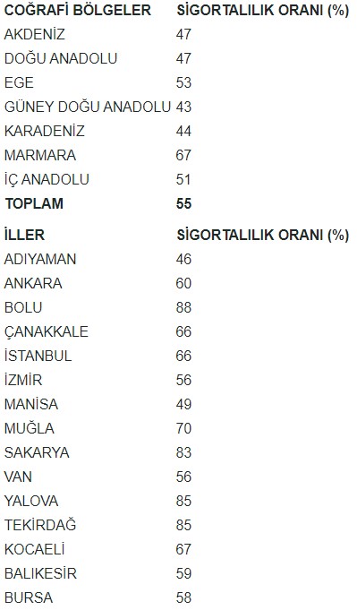 Sigortalılık oranları depremi yaşamış illerde daha yüksek