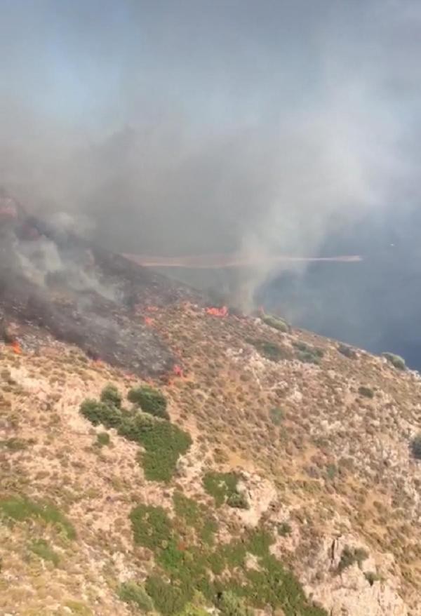 Muğla'nın Datça ilçesindeki makilik alanda yangın çıktı. Yangına, havadan ve karadan müdahaleye başlandı.
