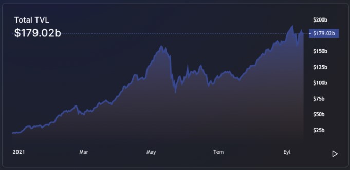 Bu sabah DeFi Llama verileri, merkeziyetsiz finans ekosistemindeki toplam kilitlenmiş varlık miktarını 179,02 milyar dolar şeklinde gösteriyor.