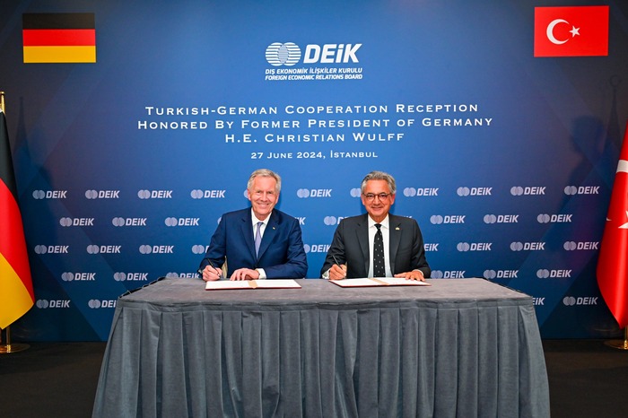Almanya Federal Cumhuriyeti eski Cumhurbaşkanı Christian Wulff’un, Resepsiyon kapsamında DEİK/Türkiye-Almanya İş Konseyi Karşı Kanat Başkanı olmayı kabul etmesinden dolayı büyük memnuniyet duyduğunu ifade eden DEİK Başkanı Nail Olpak, “Türkiye ve Almanya, özellikle Almanya'da yaşayan milyonlarca Türk kökenli vatandaşımızın olması nedeniyle derin kültürel ve sosyal bağlara sahip. Almanya’daki Türklerin varlığı hem iki ülkenin ekonomisine katkı sağlıyor hem de iki ülke arasındaki ekonomik ve ticari ilişkilerin gelişmesinde kritik bir rol üstleniyor. Gurbetçilerimiz Almanya'da yaklaşık 500 bin istihdam oluştururken, 100 bin Türk işletmesi yılda 50 milyar euro ciro üretim yaparak Alman ekonomisine ciddi katkıda bulunuyor. Almanya, Türkiye'nin AB içindeki en önemli ticaret ortağı. 2023 yılında Türkiye ile Almanya arasındaki ikili ticaret hacmi 49,7 milyar dolara ulaştı. Türkiye, Avrupa ve Asya arasındaki köprü olarak stratejik konumu ve AB ile Gümrük Birliği üyeliği, ve güvenilir bir ortak. Alman - Türk İş Konseyi, üçüncü ülkelerde iş birliği fırsatları, yatırım projelerinde ortaklıklar, KOBİ’ler arasındaki iş birliği fırsatlarının artması ve pek çok alanda iki ülkenin ekonomik iş birliğinin gelişmesinin önünü açacaktır.” dedi.