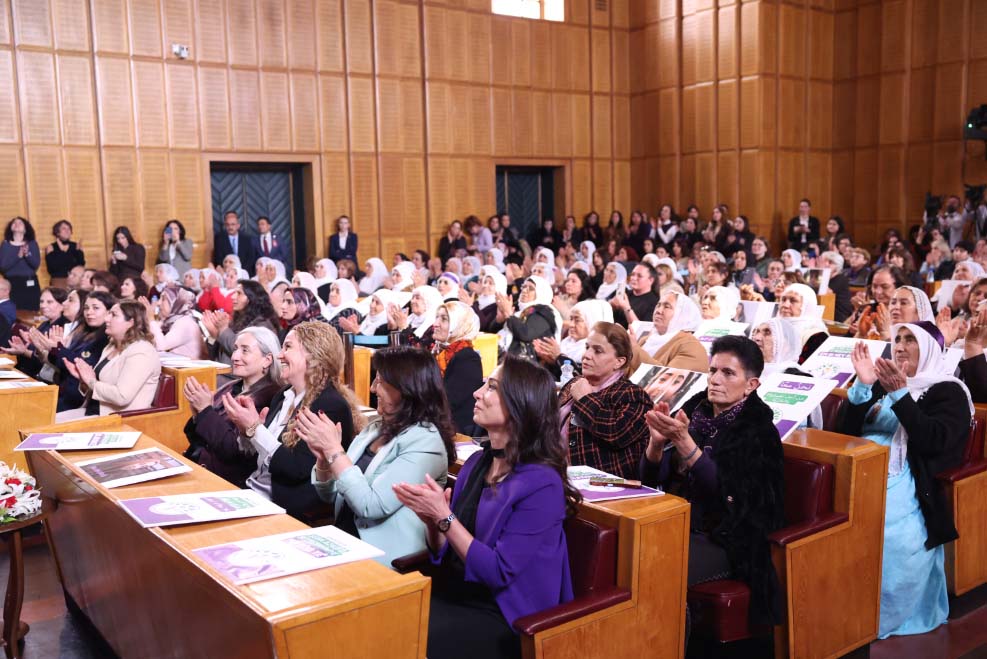 Türkiye'nin önemli bir süreçten geçtiğini ifade eden Hatimoğulları, "Barış ve demokratik toplum süreciyle çatışmaların durmuş olması çok kıymetli. Bölge kaynıyor. Bitmeyen savaş ve çatışmalarda en ağır bedeli kadınlar ödüyor. Savaşta ilk hedef kadın bedeni oluyor, ilk sessizleştirilen kadın sesi oluyor. Göç yollarında kaybolan kadınların dramı, insan tacirlerinin eline düşen genç kadınların trajedisi, savaşın kadınlara nasıl bir yıkım getirdiğinin acı gerçekliğini gözler önüne seriyor. Biz kadınlar Türkiye'nin bu trajediden kurtulması için barışa dört elle sarılıyoruz. Bizler barış sürecinde yalnızca izleyici değil, doğrudan özneleriz. Barış erkek egemen siyasetle değil, kadın özgürlükçü bir siyasal ve toplumsal dille inşa edilir. Barışa İhtiyacım Var İnisiyatifi, Kadın Özgürlük Meclisi ve DEM Parti Kadın Meclisi, bu hattın en somut taşıyıcılarıdır. Barış masalarında eşit temsili, karar mekanizmalarında etkin rol almayı vazgeçilmez görüyoruz. Bugün buradan güçlü bir iradeyle sesleniyoruz; bu ülkenin barışını kadınlar kuracak. Bu toprakların karanlığını kadınların cesareti dağıtacak. Yaşamı, demokratik geleceği, eşitliği kadınlar inşa edecek" diye konuştu.