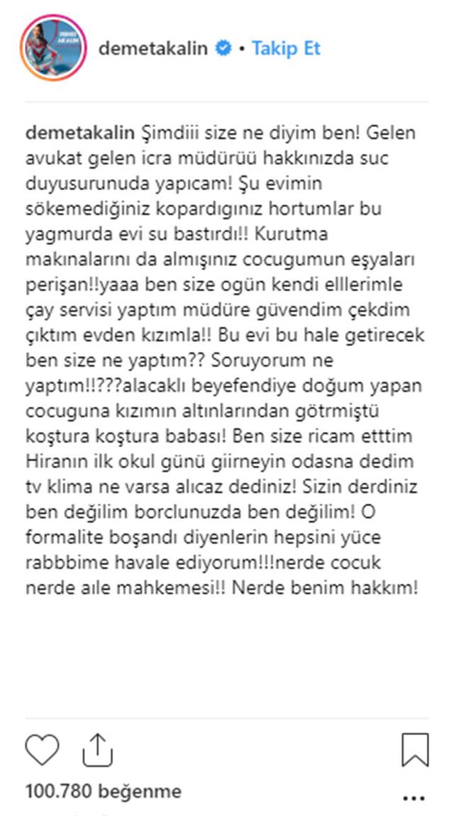 Sabah gazetesinin haberine göre; önce eşyalarının usulsüz şekilde haczedildiğini öne sürerek şikayetçi olan Akalın, şimdi de icra sırasında evindeki klima borularına zarar verildiği ve evini su bastığı gerekçesiyle tespit davası açtı.