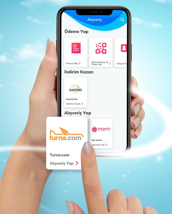 Uygulamanın fırsatlar menüsüne eklenen turna.com bölümüne tıklayan kullanıcılar, uçak biletlerini, ekstra kart numarası, CVV, vade tarihi bilgileri girip vakit kaybetmeden, daha önce belirledikleri kartlarıyla anında satın alabiliyor. Uygulama ile aynı zamanda 100 TL’ye kadar %50 indirimden de yararlanabiliyorlar.