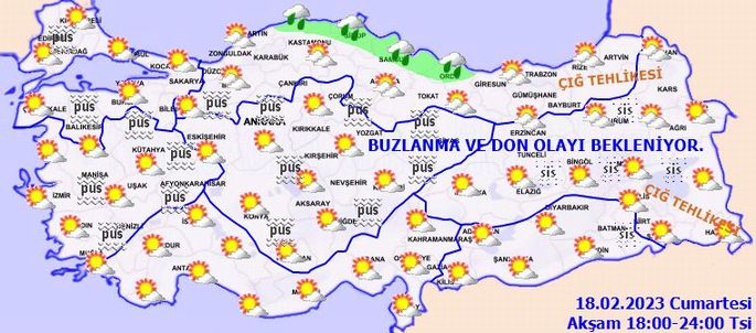 Yağışların kıyılarda yağmur iç ve yüksek kesimlerde karla karışık yağmur ve kar şeklinde olması bekleniyor. İç ve doğu kesimlerde buzlanma ve don olayı ile birlikte yer yer pus ve sis görüleceği tahmin ediliyor.