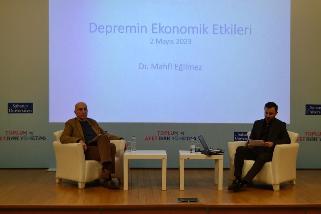 Sabancı Üniversitesi Yönetim Bilimleri Fakültesi tarafından düzenlenen “Toplum ve Afet Risk Yönetimi” seminer dizisinin beşincisi 2 Mayıs Salı günü gerçekleşti. “Kahramanmaraş Depremlerinin Ekonomik Etkileri” başlığıyla Sabancı Üniversitesi Öğretim Üyesi Orhan Erem Ateşağaoğlu moderatörlüğünde gerçekleşen seminerin konuğu İktisatçı-Yazar ve Eski Hazine Müsteşarı Mahfi Eğilmez oldu.