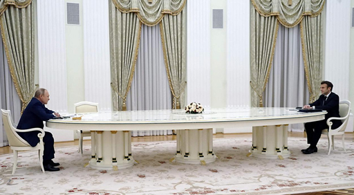 Ukrayna krizine diplomatik çözüm bulmak için Moskova'ya gelen Macron Rus mevkidaşı ile 'mesafeli' bir görüşme gerçekleştirmiş görüşmeye 'uzun masa' damgasını vurmuştu. Pek çok yabancı gazetenin ti'ye aldığı görüntüler sosyal medyada da günün konusu olmuştu.