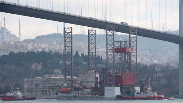 Dev platform, saat 10.00 sıralarında Marmara Denizi’nden Boğaz’a girdi. Kuleleri alçaltılan platform saat 12.00 sıralarında 15 Temmuz Şehitler köprüsünün altından geçti. Dev petrol platformunun köprü altından geçişi havadan da görüntülendi.