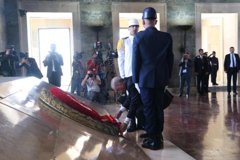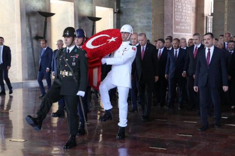 Cumhurbaşkanı Erdoğan ve beraberindekiler, Aslanlı Yol'dan yürüyerek, Atatürk'ün mozolesine geldi. Erdoğan'ın, mozoleye çelenk bırakmasının ardından heyet, saygı duruşunda bulunarak İstiklal Marşı'nı okudu. Cumhurbaşkanı Erdoğan ve beraberindekiler, ardından Misak-ı Milli Kulesi'ne geçti. Anıtkabir Özel Defteri'ni imzalayan Erdoğan, şunları kaydetti: