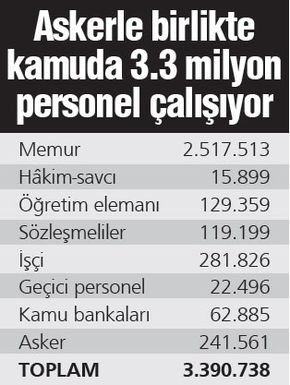 Hükümet, kamu personel rejiminde köklü bir değişikliğe giderek, “devlet memurluğu” sistemini baştan aşağı değiştirecek. Muhalefetle anlaşırsa, 657 sayılı Devlet Memurları Kanunu’nun temeli olan Anayasa’da revizyona gidecek olan AK Parti, “devlet memuru” yerine “kamu çalışanı” kavramını getirecek. Memurlar, işçiler, sözleşmeliler, kadro karşılığı sözleşmeliler “kamu çalışanı” adı altında tek bir statüde toplanacak.