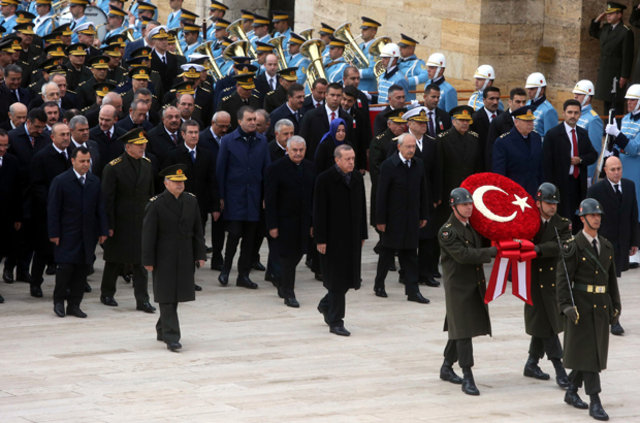 29 Ekim Cumhuriyet Bayramı törenleri Anıtkabir'de başladı. Cumhurbaşkanı Erdoğan önderliğindeki devlet erkanı Ata'nın huzuruna çıktı.