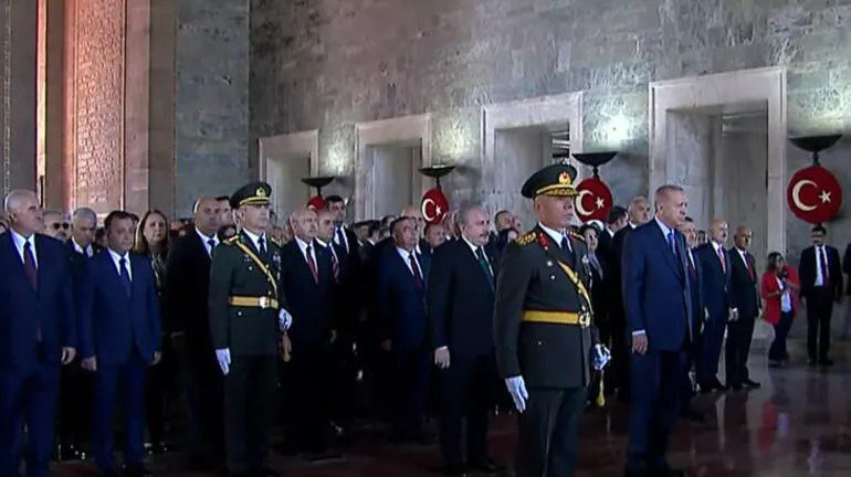 Cumhurbaşkanı Recep Tayyip Erdoğan başkanlığındaki devlet erkanı Anıtkabir'e çıktı. Törene Meclis Başkanı Mustafa Şentop, Cumhurbaşkanı Yardımcısı Fuat Oktay, CHP Genel Başkanı Kemal Kılıçdaroğlu, İYİ Parti Genel Başkanı Meral Akşener, MHP Genel Başkanı Devlet Bahçeli, bakanlar, yüksek yargı temsilcileri, Genelkurmay Başkanı ve kuvvet komutanları katılıyor.